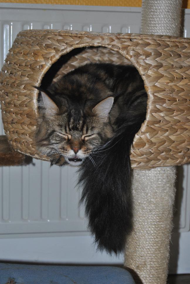 | Oui, 3. Cheyenne, le tigré, 18 mois, Ficelle l'écaille, 14 mois, et Darth Vader, le black smoke, un réfugié, 2ans et demi. Juste en ce moment Ficelle et Vador dorment ensemble sur la plate forme, c'est la première fois en 6 mois que je les vois faire çà.