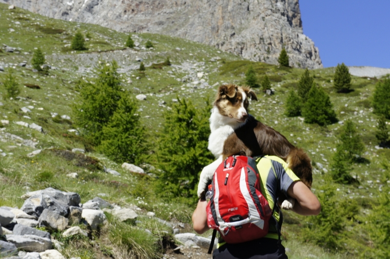 | Qui a dit que les Aussies, on les a toujours sur le dos !!! Belle démonstration de dominance du chien sur l'homme... Je pratiquais aussi cette activité avec mon précédent chien (15 kgs) mais là, je vais même pas montrer la photo à Junon Magnifiques paysages ! |
