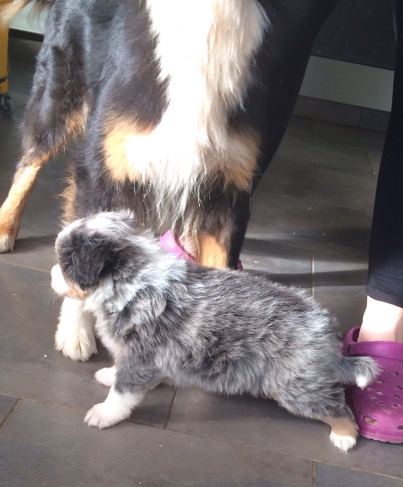 | Bonjour à tous et question dilution Bonjour dans 2 semaines je serais l heureuse maîtresse d une belle femelle berger australien noir tri dilué c est à dire que actuellement elle est grise... Ces parents sont tout 2 noir tri et je me pose la question de savoir si elle va rester grise ou devenir malgres tout noir tri ??? Avez vous une idée ou été dans le même cas ?? Je l ais choisi pour sa couleur atypique et originale mais si elle devient noir je l aimerais quand même rassurer vous lol j avoue que je tenais absolument à avoir une chienne bleu merle mais j ai eu un gris coup de cœur pour cette petite boule de poils !!! Hâte de l avoir à la maison