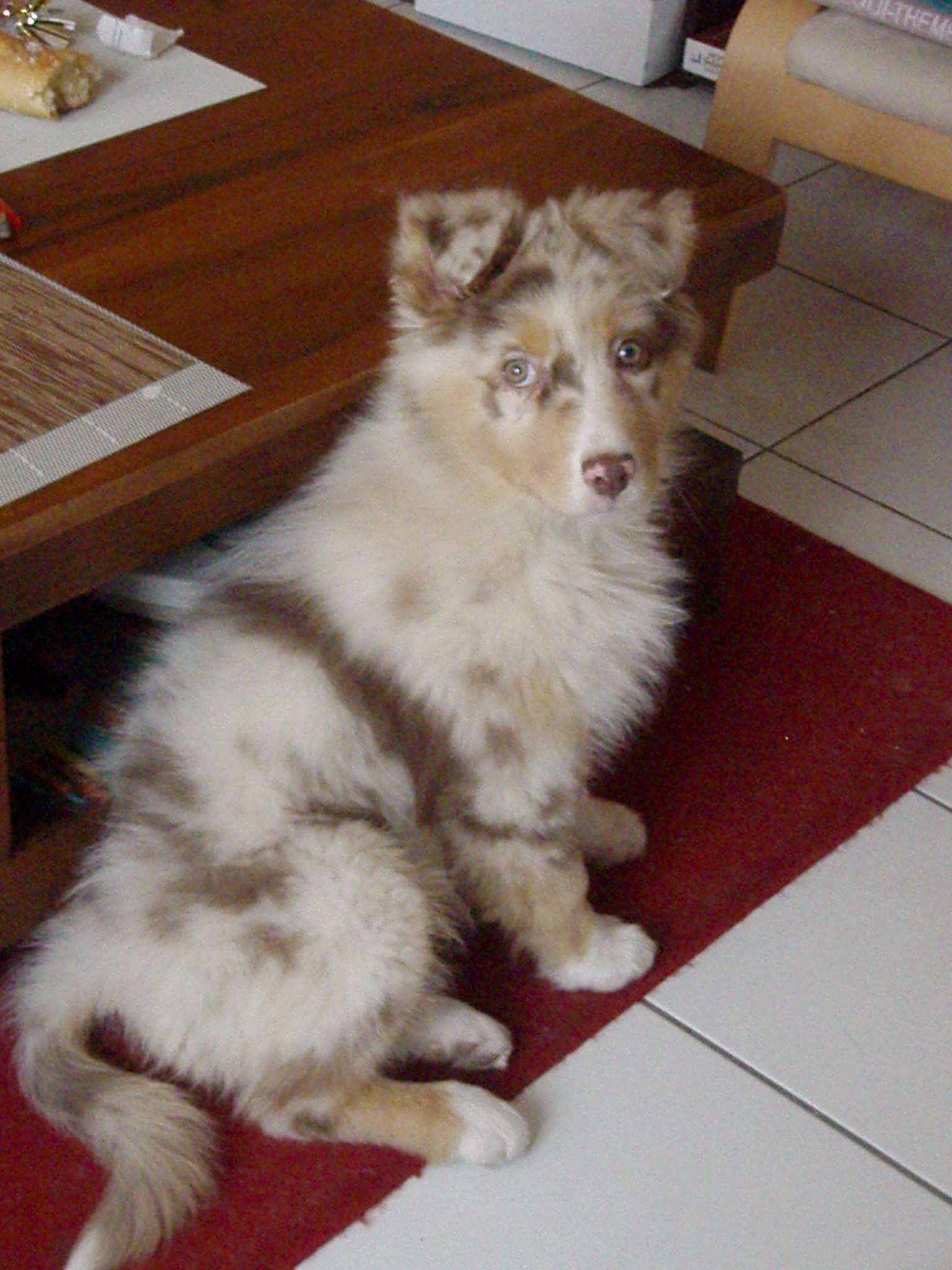 | Tout nouveau propriétaire (j'allais dire papa...)d'un aussie mâle de 3 mois, je te souhaite bienvenue chez les Chti (j'en suis originaire)..je voulais dire chez les gagas des aussies.