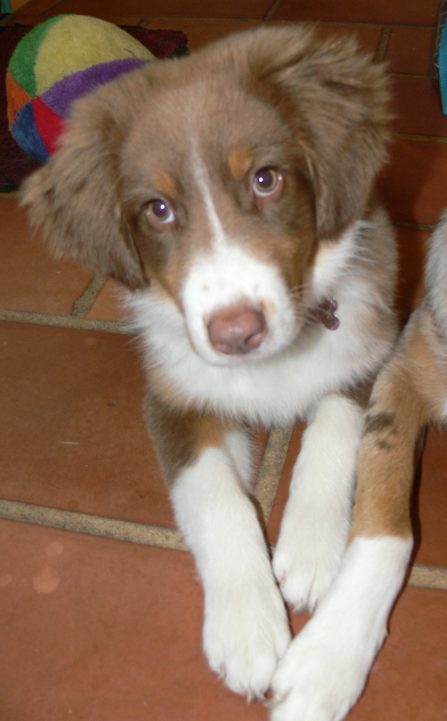 | Salut, Je m'appelle Amélie j'ai 20 ans et j'habite dans l'Eure. J'ai craquer pour ma petite aussie Faélys qui a aujourd'hui 3 mois et demi c'est ma petite merveille elle est très caline et obéissante mais aussi très très coquine et énergique ! Avec elle je pratique l'agility chiot et l'obérythmée et on adore ça mais j'aurais surement besoin de pleins de conseils c'est pour cela et aussi pour partager ma passion des bergers australiens que je me suis inscrite ici. Pour la description de ma louloute : Son nom officiel : Just a Dream Of Folly Red Pepper Son nom usuel : Faélys Son pere : Velvet Titre Initial Sa mere : Ultra Red Only of Looping's New World dite "Ucla" Sa couleur : Rouge Tricolore Voila vous savez tout ! Archange