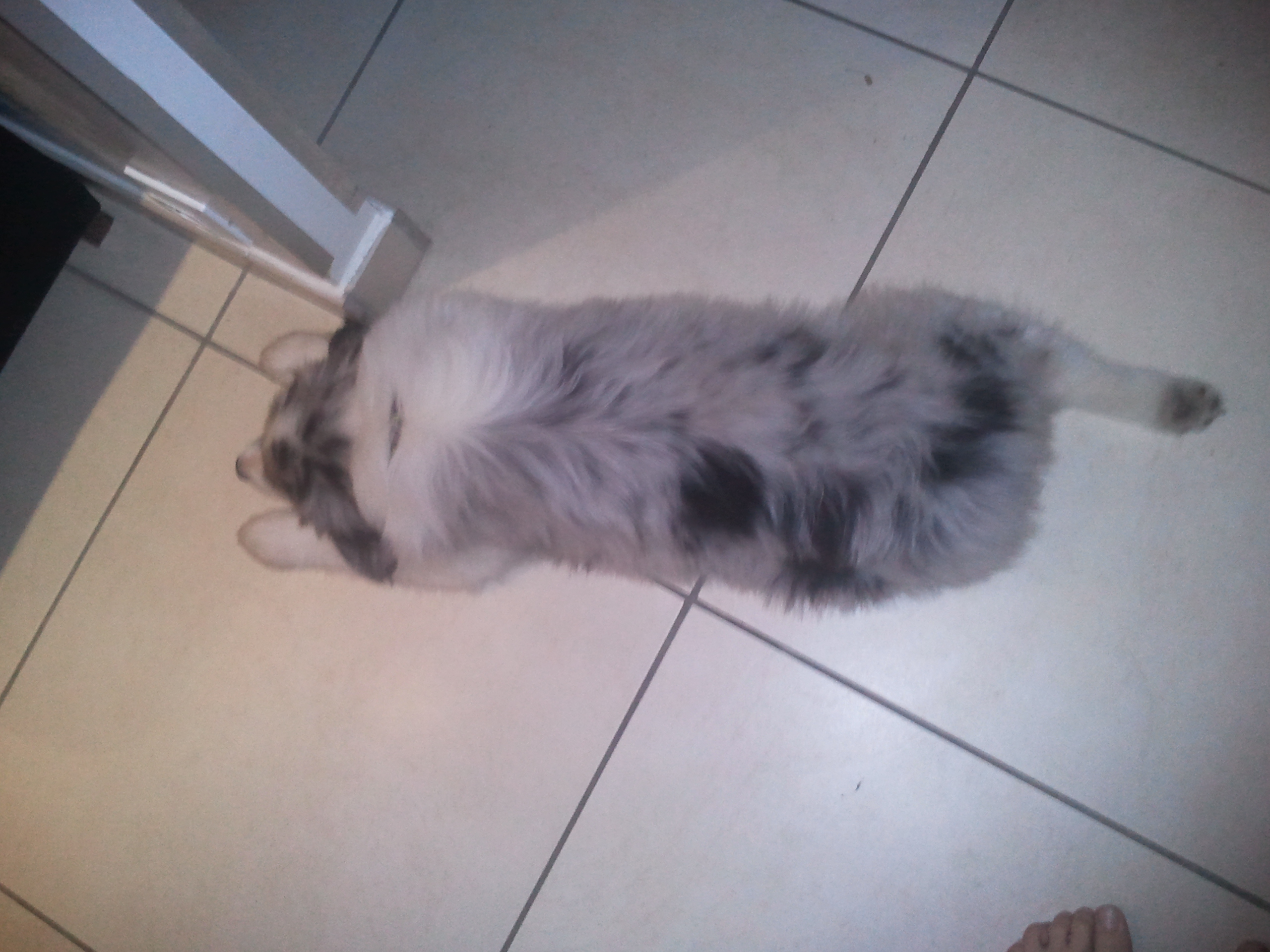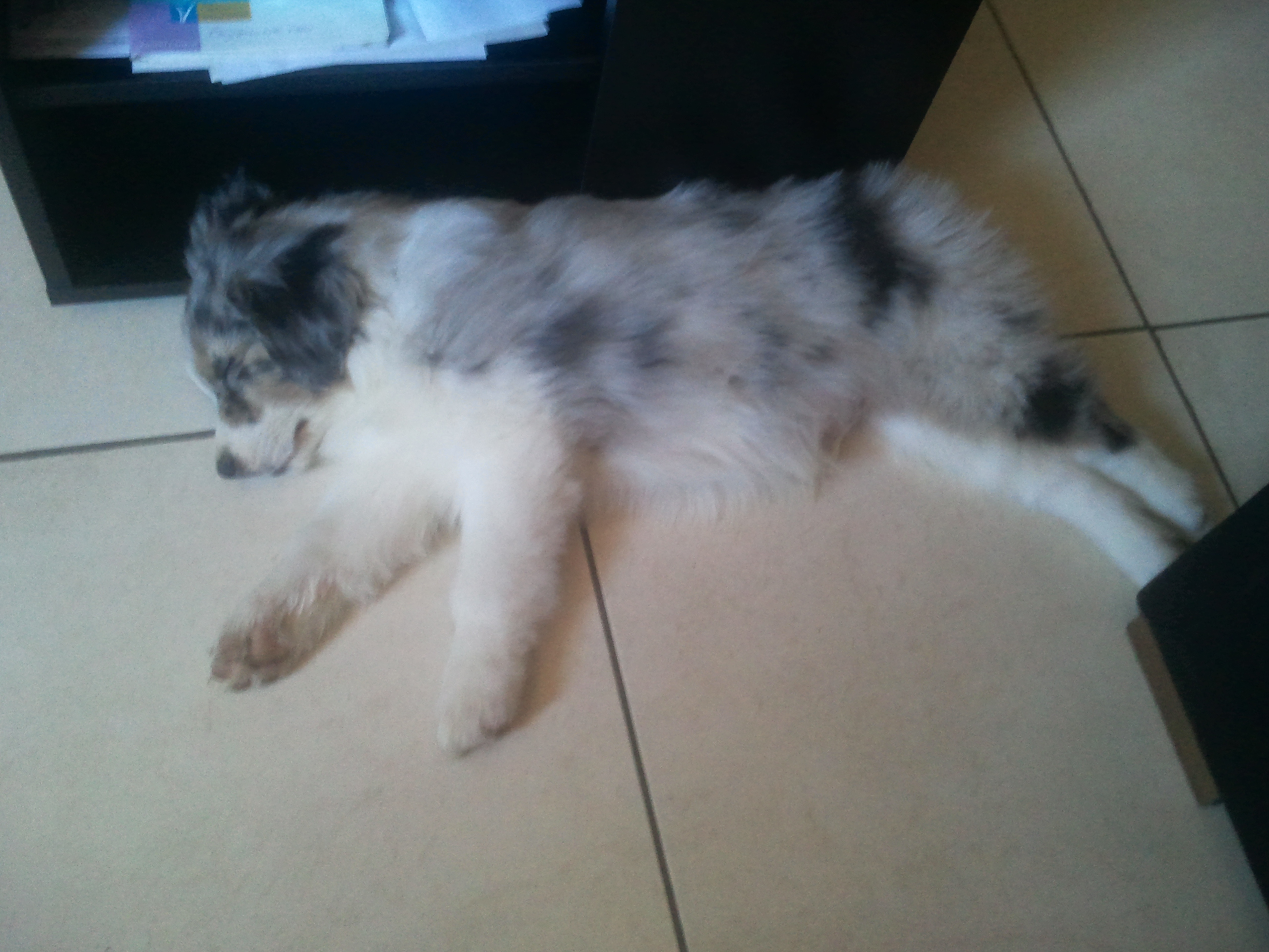 | Le mien mais souvent ses pattes de devant ainsi. Il est tres beau