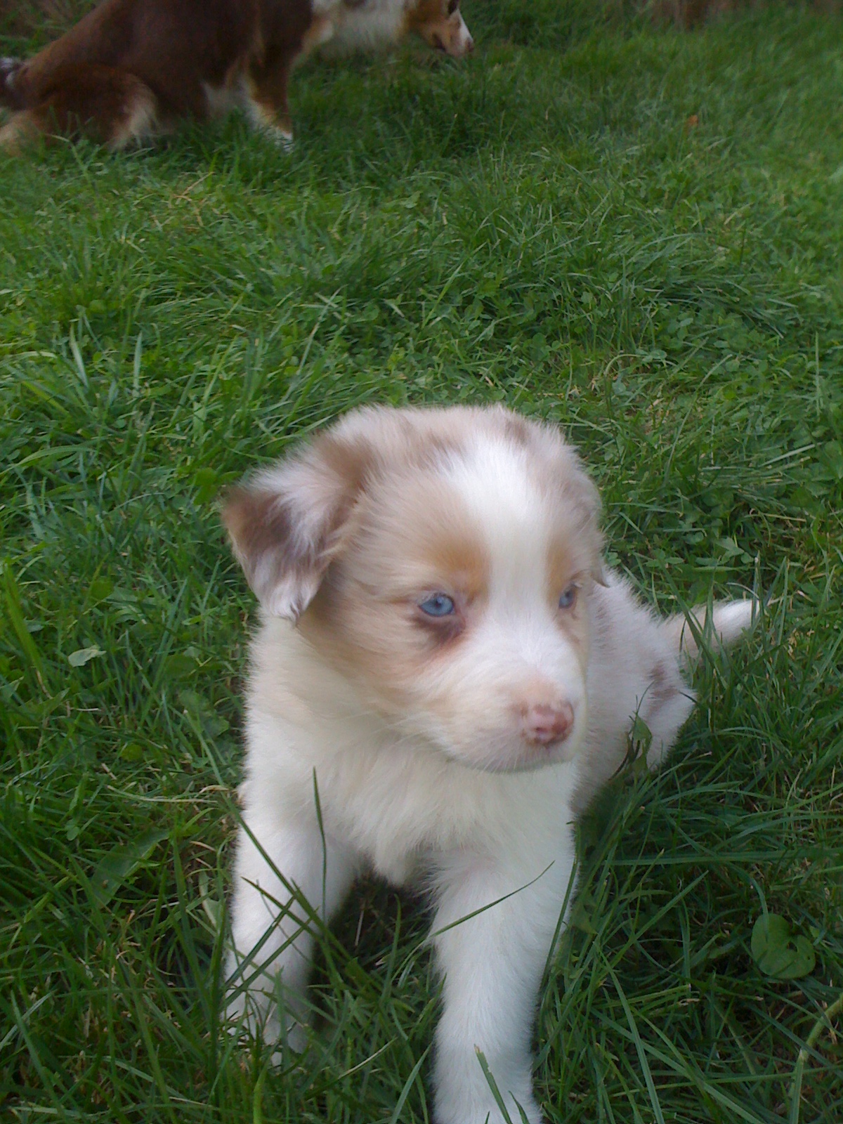 | Bienvenue ! Un rouge merle aux yeux bleux comme moi Tres beau en tt cas ton loulou