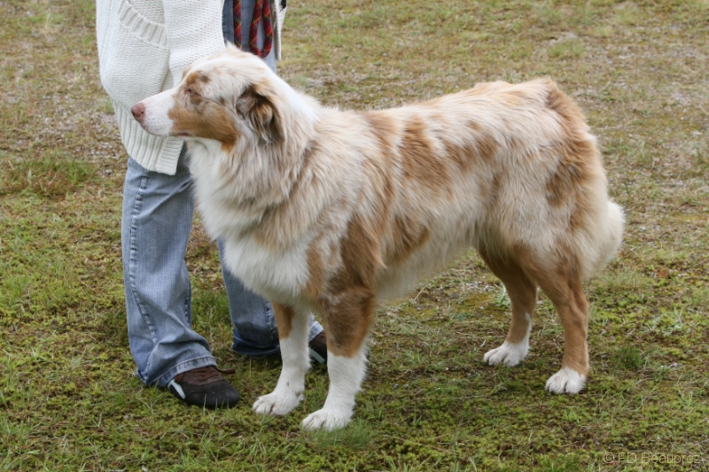 | Bonsoir! Si j'ai bien suivi la règle, il me faut présenter mes petits monstres avec un minimum de généalogie Soit allons-y. Je me présente vite fait : Delphine alsacienne de son état et propriétaire en temps normal de trois cinglés et à l'heure actuelle j'ai une petite troupe de 14 chiens (ben vi Boonty a eu ses petits ;)) Il y a donc Biija la femelle samoyède qui a eu 3 ans le 28 février : père Classic samojed of paradise Pay solan, mère Shinook de l'étoile des Neiges d'Hohr, Brooklyn (de son vrai nom Basthêt Spirit de l'étang de Pincemaille) mâle bleu merle castré qui a eu 2 ans le 10 décembre 2008 père Trulyawesome Eight of Hearth et mère Vanille de l'étang de Pincemaille et enfin Boonty Red femelle rouge merle qui va avoir 3 ans le 22 juillet : père Vulcain du Coral Twivro et mère V'kaya des Gardiens d'Hadès Et pour finir, il y a pour encore un petit mois , Eraclès, Elendil, Ephaïstos, Enola, Eurydice, Etania, Ermione, Eilistraée, Eléis de l'Eden de Basthêt mère : Boonty Red et père Bayshore red white and blue. Voili voilà ma petite troupe J'avais une question à 100 sous : on m'a dit qu'Ephaïstos (mâle rouge tri) était facteur blanc car l'intérieur de ses cuisses étaient blanches. J'aurais donc voulu savoir si qqun pouvait me renseigner un peu plus sur ce facteur Merci beaucoup à vous. Delphine