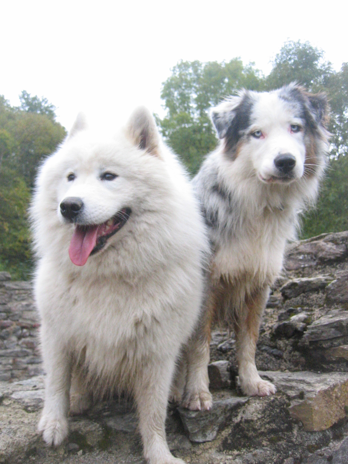 | Bonsoir! Si j'ai bien suivi la règle, il me faut présenter mes petits monstres avec un minimum de généalogie Soit allons-y. Je me présente vite fait : Delphine alsacienne de son état et propriétaire en temps normal de trois cinglés et à l'heure actuelle j'ai une petite troupe de 14 chiens (ben vi Boonty a eu ses petits ;)) Il y a donc Biija la femelle samoyède qui a eu 3 ans le 28 février : père Classic samojed of paradise Pay solan, mère Shinook de l'étoile des Neiges d'Hohr, Brooklyn (de son vrai nom Basthêt Spirit de l'étang de Pincemaille) mâle bleu merle castré qui a eu 2 ans le 10 décembre 2008 père Trulyawesome Eight of Hearth et mère Vanille de l'étang de Pincemaille et enfin Boonty Red femelle rouge merle qui va avoir 3 ans le 22 juillet : père Vulcain du Coral Twivro et mère V'kaya des Gardiens d'Hadès Et pour finir, il y a pour encore un petit mois , Eraclès, Elendil, Ephaïstos, Enola, Eurydice, Etania, Ermione, Eilistraée, Eléis de l'Eden de Basthêt mère : Boonty Red et père Bayshore red white and blue. Voili voilà ma petite troupe J'avais une question à 100 sous : on m'a dit qu'Ephaïstos (mâle rouge tri) était facteur blanc car l'intérieur de ses cuisses étaient blanches. J'aurais donc voulu savoir si qqun pouvait me renseigner un peu plus sur ce facteur Merci beaucoup à vous. Delphine