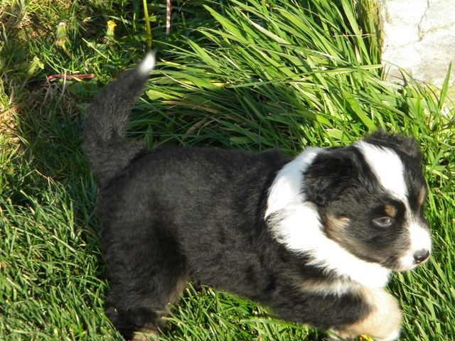| Hello à tous, Nous sommes Pascal, Josiane et Jonathan, nous résidons à Bruxelles et nous sommes bientôt les heureux propriétaires d'une petite femelle Aussie noire tricolore. Elle s'appelle Iumyko des Franch'Balzanes, née le 18/10/2009. Père : CH. Fatal dice van Nattrekja Mère : Djudy des Franch'Balzanes Nous attendons avec impatience samedi 18 pour chercher notre chérie Cela fait déjà deux trois jour que je parcours le forum avec intérêt et suis impatients qu'elle soit à la maison, pour pouvoir poser quelques questions concrêtes. Pour finir deux petite photos de notre futur trésor et à peluche sur le forum
