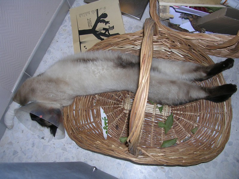 | Je me demandais ce que j'allais voir en ouvrant ce post Joli le minou, bon rétablissement à lui ! Pour les comprimés, j'utilise Observance (vendu par le vétérinaire), une espèce de pâte malléable qui permet d'enrober le comprimé. Ma chatte en est folle, du coup elle gobe tout sans faire gaffe