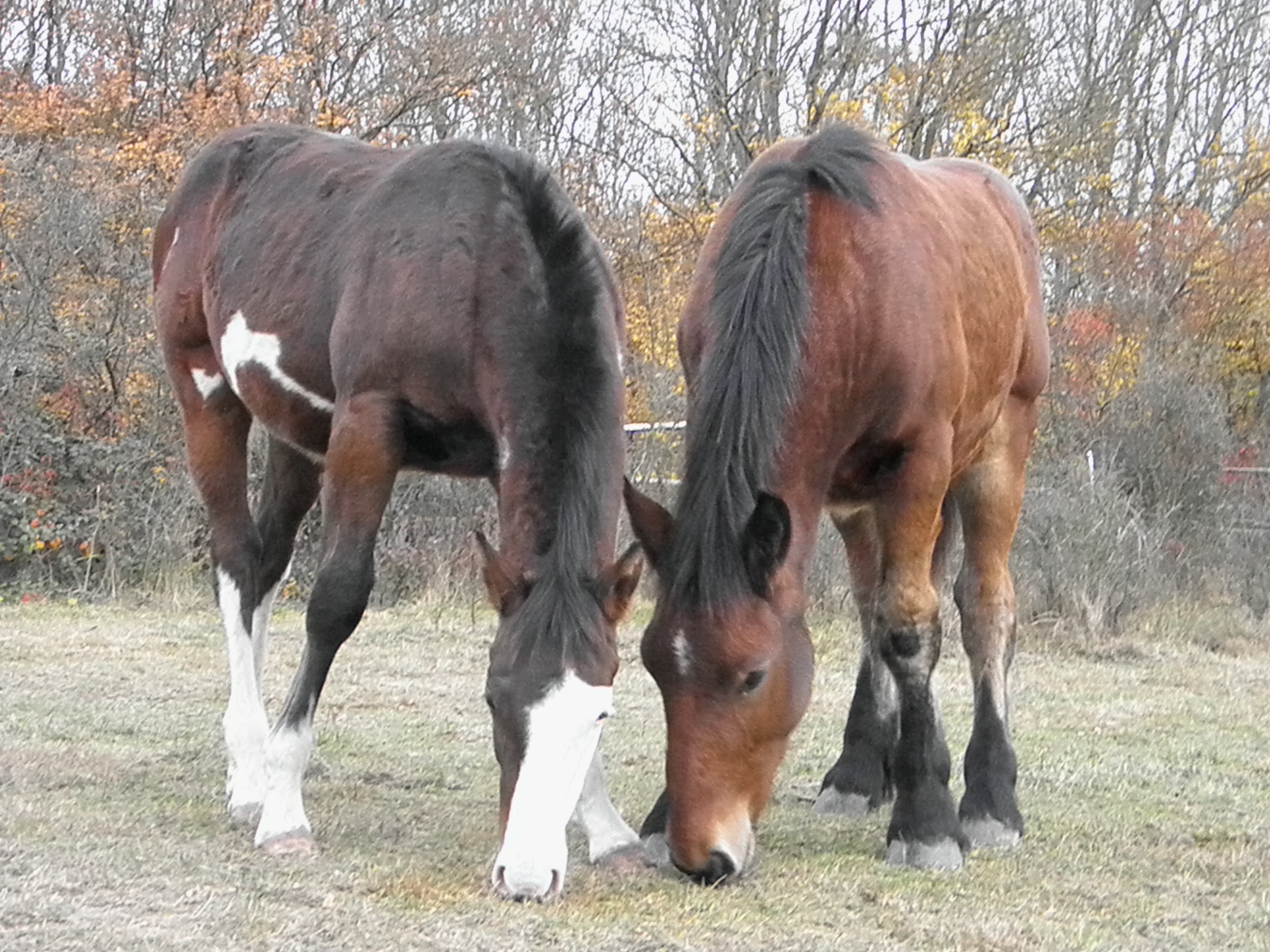 | Wouahhh, comme elle est costaude , ta jument, elle est très belle, et comme on dit chez nous, ya un morceau !! Et les deux bébénous sont très mimi, et ont l'air de s'accorder, super !!!!! Bien beau trio, et tu montes en balades ou tu fais autre chose ?