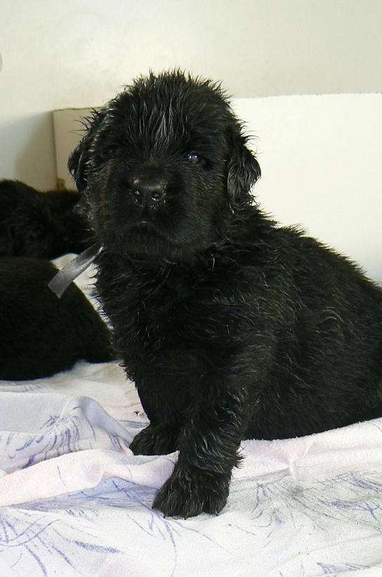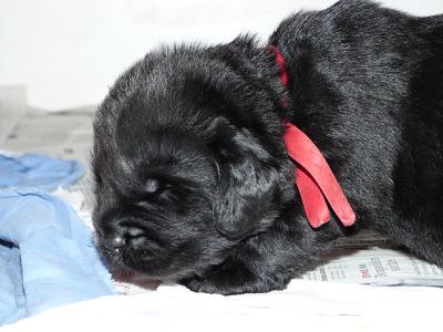 | Ici, j'ai souvent biberonné. D'abord parce que cela ne fait pas de mal aux chiots et ensuite parce que cela repose tout de même la mère... Si c'était une portée d'aussie ou d'une autre race moyenne, je ne pense pas que je biberonnerais, mais dans le terre neuve, cela se fait beaucoup... Tout comme on ne laisse pas la mère en permanence avec ses chiots quand ils sont petits car le risque d'écrasement est trop élevé...