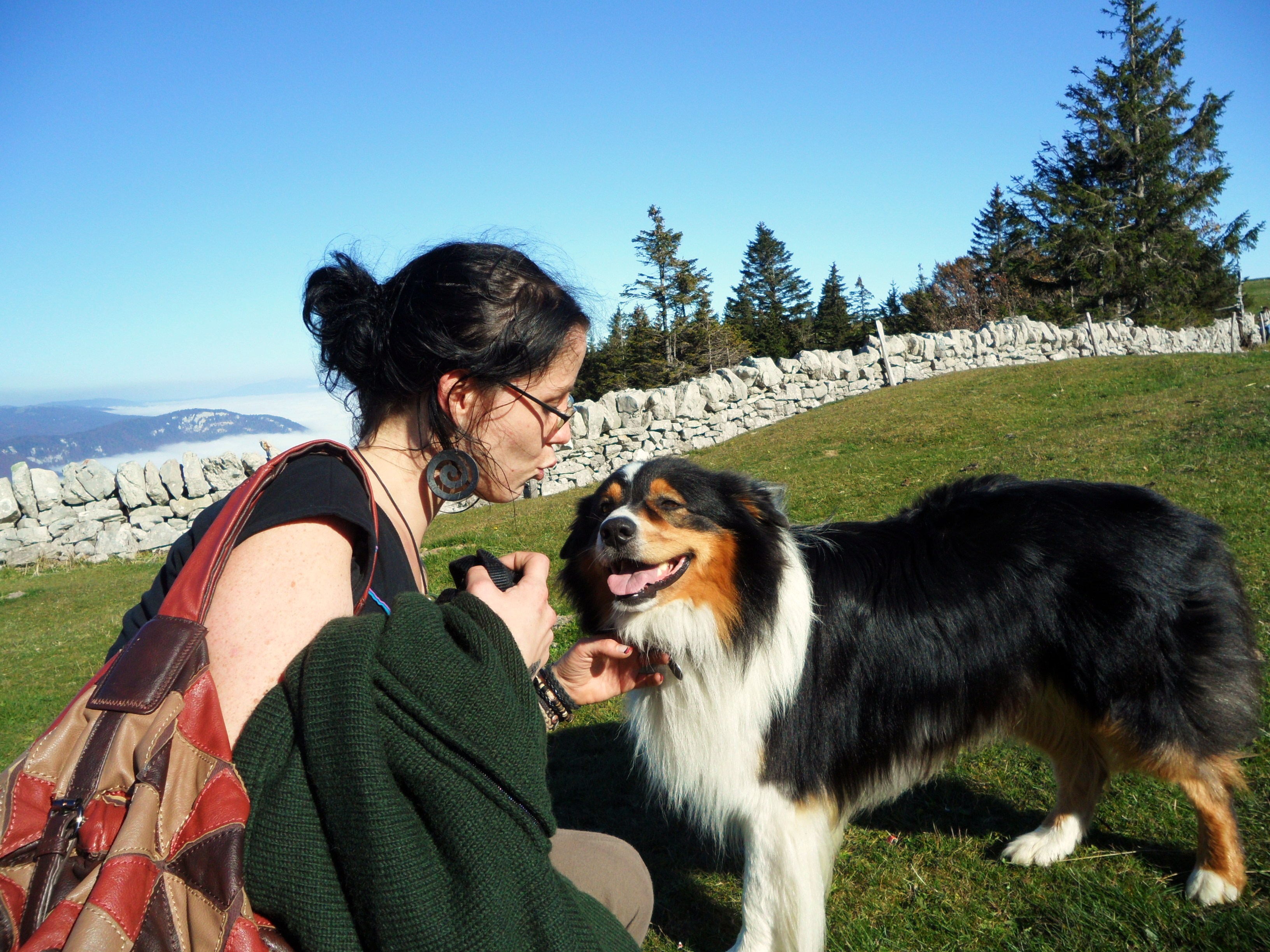 | B'soir! Brock va bien (il mâchouille un os à côté de moi là!), et a l'air d'apprécier la Suisse On n'a malheureusement pas pu voir Luna ce week end.... Le week prochain peut-être, mais on aura d'ici là d'autres compagnons de promenade en vue....! Pour la Toussaint nous seront dans un chalet de montagne, et la semaine suivante dans une yourte, le tout au plus près de la nature.... Me réjouis, et je crois que Brok aussi(e)! Quelques photos de nos promenades https://upload.alloforum.com/9391/2YTQ8KAH https://upload.alloforum.com/9391/H0U4SRE7