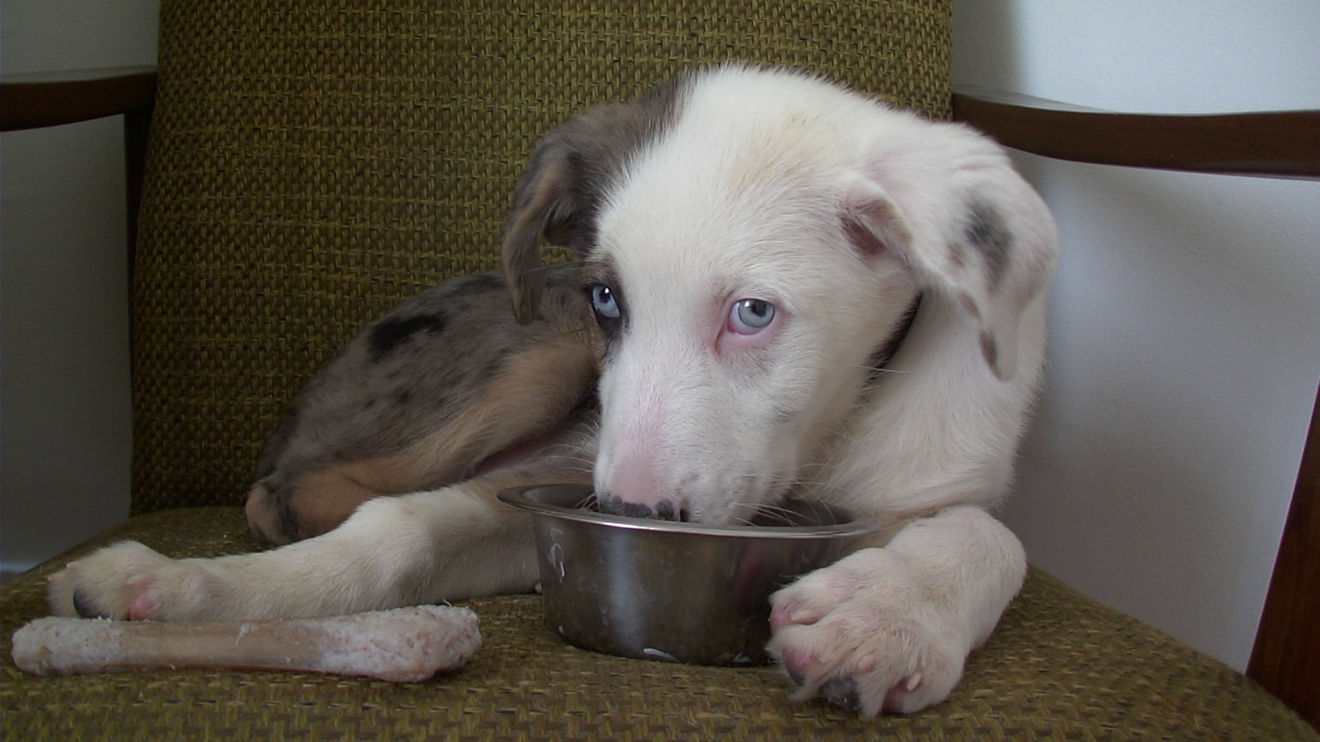 | Merci pour vos messages de bienvenue ! Oui, je ne serais pas surprise qu'il y ait un peu d'autre chose dans ce petit loup... (c'est surtout le poil moyen-court qui me fait penser ça). Les gens de la SPA pensent qu'il est issu d'un croisement bleu merle et rouge merle (son frère et sa soeur étaient borgnes...). Savez-vous comment procéder pour dépister le MDR-1 ? (quand je suis allée le chercher on m'a dit qu'il y avait un risque). A bientôt !