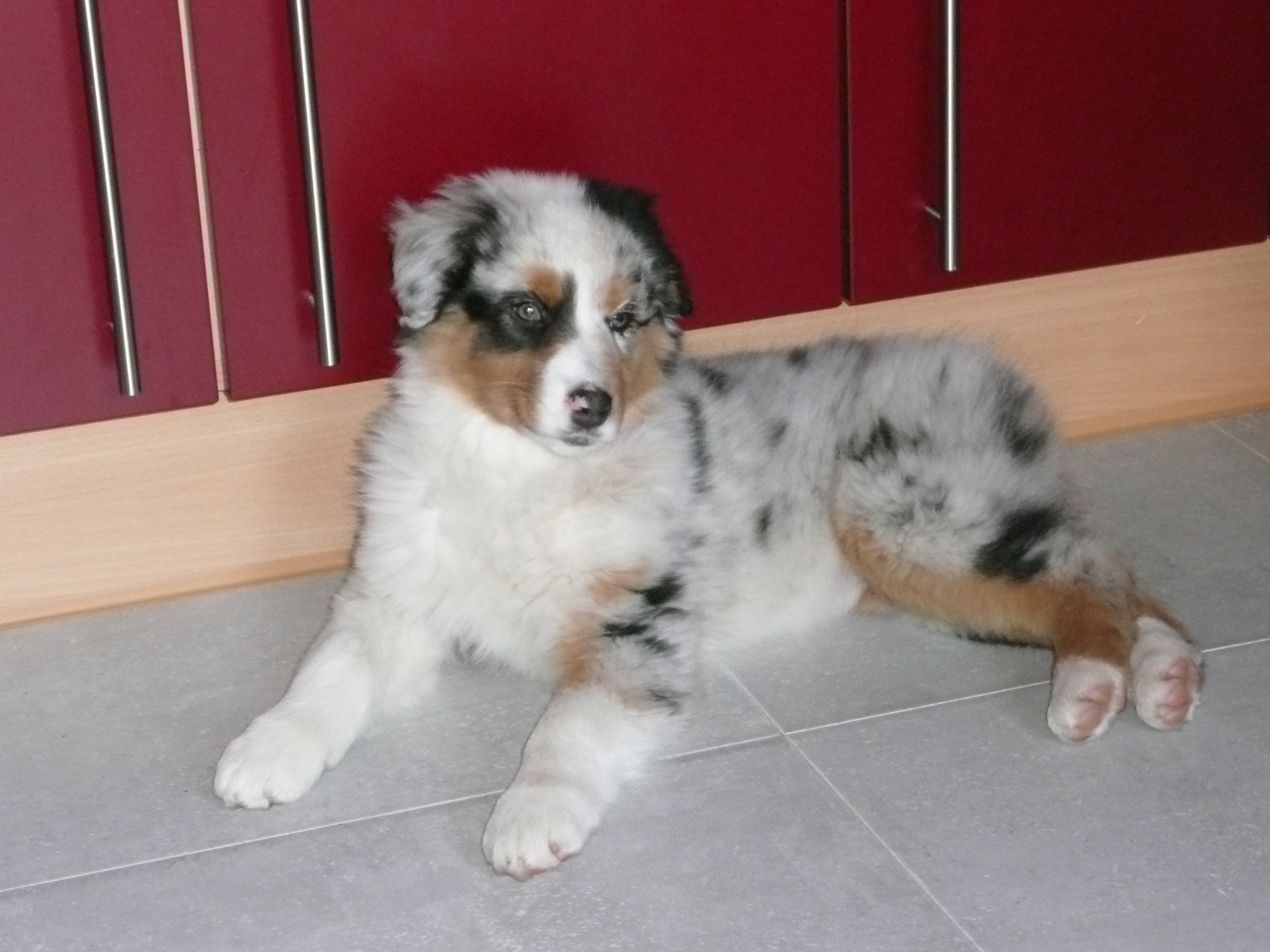 | Bonjour, Bonsoir, Et voilà, je suis heureuse de rejoindre le monde des propriétaires d'Aussie. Le chien de mes rêves est enfin devenu réalité depuis le 5 décembre 2008. Je vous présente d'abord ma petite Luna... Nom complet : D'Sezanne Luna Blue Of The Little Black Moon Née le 21/09/2008 Femelle bleu merle Maman : Tjena Tipsy Top Du Plumeau d'Argent (LOF) Papa : Scaramouche de Solemel (LOF) Elle provient d'un élevage en France et je l'ai donc importé en Belgique. Elle se trouve dans notre famille depuis le 5 décembre. Pour ma part, je suis maman d'un petit garçon qui aura 3 ans demain, j'ai également 3 chats (2 matous et 1 femelle) et 1 lapin nain. Vous l'aurez compris, j'habite en Belgique. Voili voilou, les présentations sont faites. J'espère passer de bons moments sur ce forum. Bonne soirée.