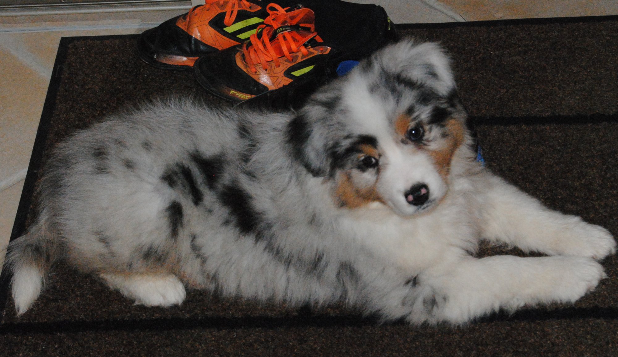 | Bonjour à tous, Je me présente donc, Fred (Coxan), Marié 2 enfants (jumeaux de 10 ans) Originaire de Lorraine, nous sommes venus atterrir en Vendée depuis 11 ans (pour le boulot) Donc après - 2 chats, dont un toujours là - 2 poules - 2 poisson rouges - 1 Hamster nain Russe Voici enfin notre nouveaux bébé: HEAVEN 2 mois 1/2 maintenant mâle bleu merle à queue longue, yeux marrons ne provenant pas d'un élevage proprement dit, mais de personne qui ont des bergers australiens LOF depuis plusieurs années et dont le mâle (Fever) et la femelle (Pearl) font des galipettes de temps à autres dans le dos de leurs maîtres !!! C'est notre premier chien, très câlins, affectueux, coquin, et très joueur ..... l'école du chiot n'attend que lui. voilà si j'ai oublié des choses, j'attend vos questions Bye https://upload.alloforum.com/9391/46V73FDS