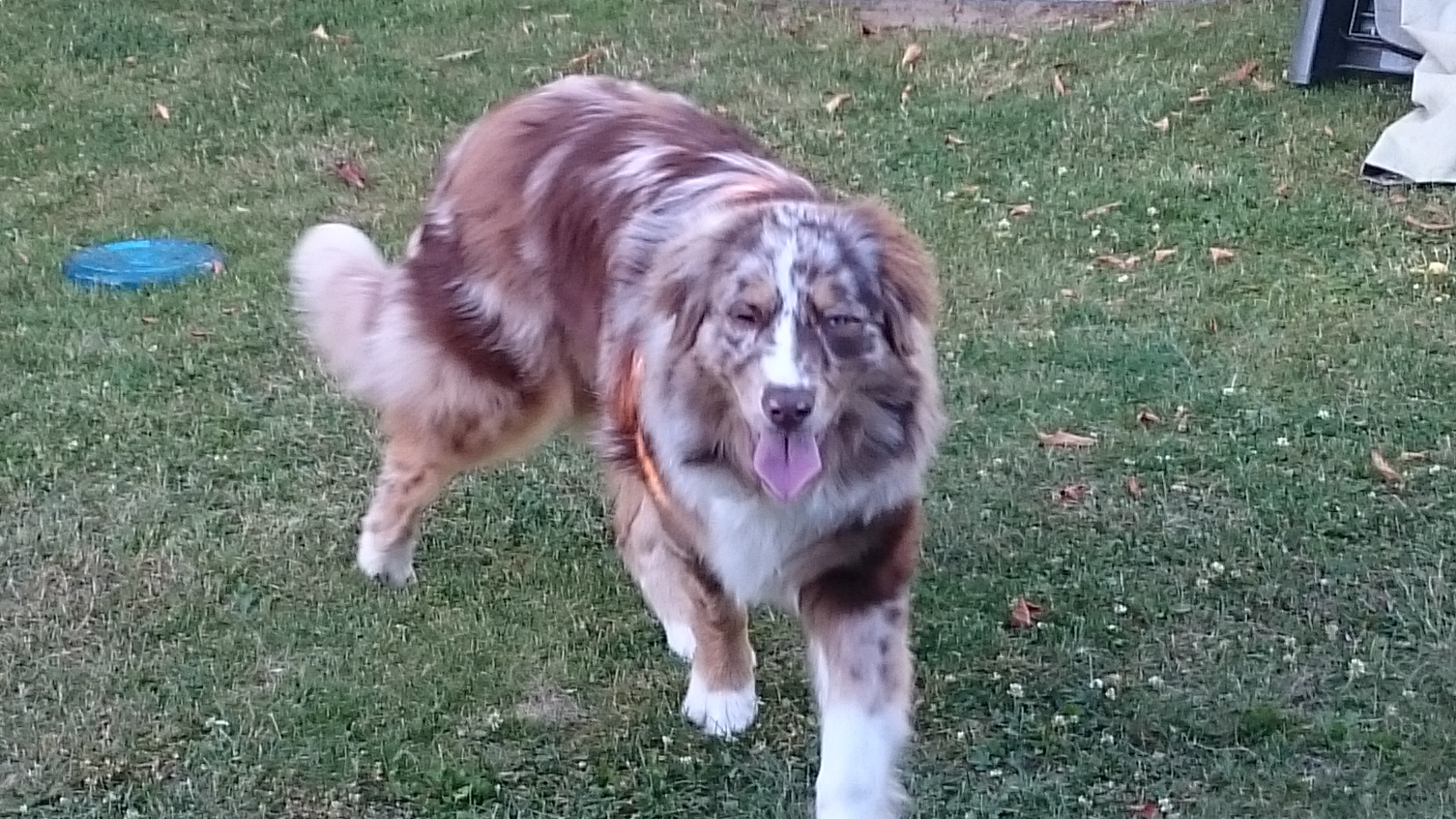 | Bonsoir, Je suis l'heureuse propriétaire d'un berger Australien rouge merle aux yeux vairons de 9 mois. 22 kgs d'amour. https://upload.alloforum.com/9391/U3H3AF53
