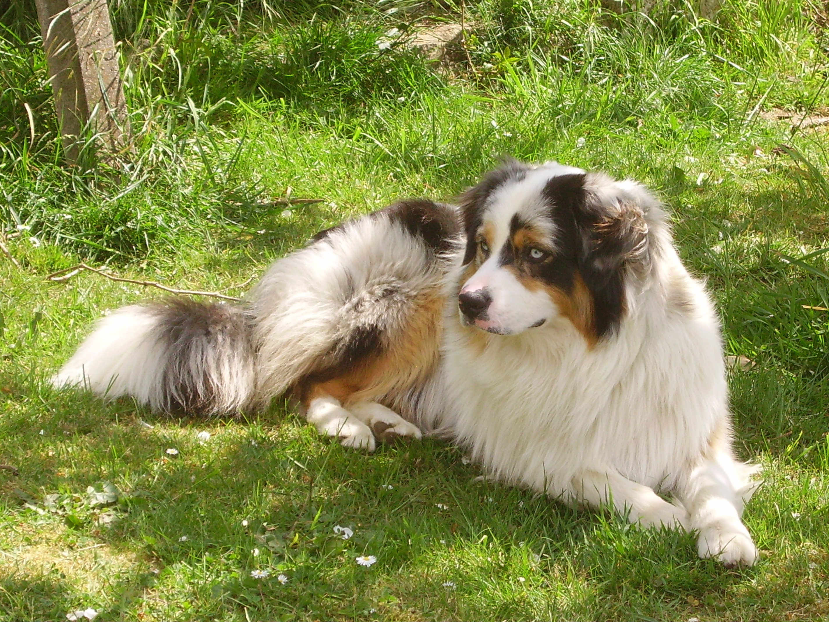 | Bonjour à tous, Nous sommes les maîtres d'Enjy, qui va avoir 1 an le 13 juin prochain. C'est un mâle, bleu merle, que nous avons acheté à un particulier. Il est LOF. Il a les yeux vairons et une belle queue en panache Il est MAGNIFIQUE ! (je suis pas objective là...) Nous habitons un pavillon à la campagne. Enjy court avec son maître. Il a tout l'équipement pour. Avant Enjy nous avons eu un Briard, puis un bouvier bernois que nous avons perdu à seulement 9 ans. On voulait reprendre un chien plus petit et une autre race mais avec le même style de caractère. Enjy est vif et souple. Ca nous change de notre gros pépère. Il est génial avec les enfants. Il les adore. Il adore aussi Tom, notre chat qui est habitué aux gros chiens et qui fait la loi à la maison ! https://upload.alloforum.com/9391/8PU1BBWF
