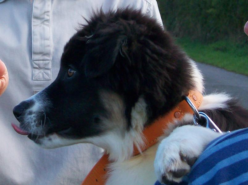 J'essaie de vous mettre des photos. A 2 mois, 3 mois avec les oreilles dressées et à 4 mois, les oreilles retombées. Il est déjà passionné par les vaches...