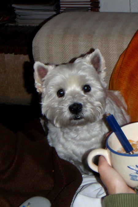 | Elle est choupi qd meme! Le toilettage nickel!!! Ce que j'adore, ce sont leurs yeux: 2 boutons bien noirs et tres expressifs. Pour en avoir eu un il y a longtps, je suis d'accord avec "un grand chien dans un ptit corps"... C'est exatement ca!!! Aujourd'hui, j'avais envie d'un chien plus grand, mais si je devais reprendre un petit chien, je repartirai sur un Westie (ou sur un mini Aussie!!! ) Courage a vous, c'est dur de perdre son compagnon. |