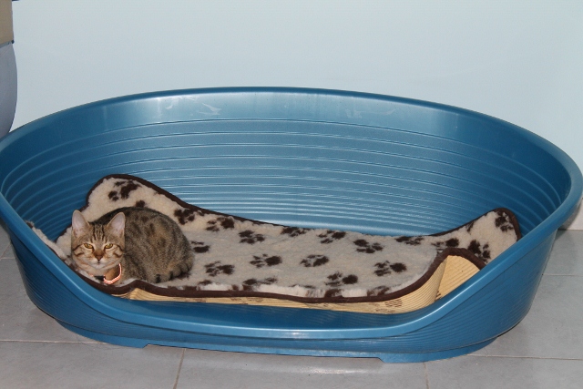 | Voici quelques nouvelles de chancinette, elle va très bien, s'entend toujours aussi bien avec nos loulous. Elle s'est trés bien adaptée à sa nouvelle maison, nous avons déménagé dans la même maison ( la grange qui a été rénovée donc beaucoup plus grand et avec accès direct au terrain ) ! Elle a pris ses aises et maintenant que nous sommes réellement en confiance elle a libre accès à toute la maison et même en notre absence avec les chiens évidemment elle a un petit portillon et le canapé pour se cacher ou monter à l'étage si elle le souhaite! Désolée pour ce pavé, place aux photos avec summer cette fois ci! Elle apprécie les panières des chiens enfin là les ils étaient dehors du coup pas pu faire de photos quand ils dorment ensemble!