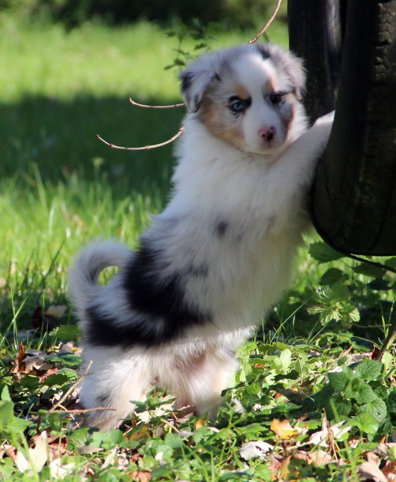 | Bonjour à tous Je m'appelle Stéphane, 31 ans et habite en Haute Savoie. Je viens d'adopter un Berger Australien... Elle viens tout droit du Paradis Sauvage du Menestruel Elle se prénome Hazel Blue mais plus pour longtemps Et oui dans 1 semaine ma petite puce va s'appeller Jude . Elle a 7 semaines. Couleur : Bleu Merle https://upload.alloforum.com/9391/UEJJ9I7H
