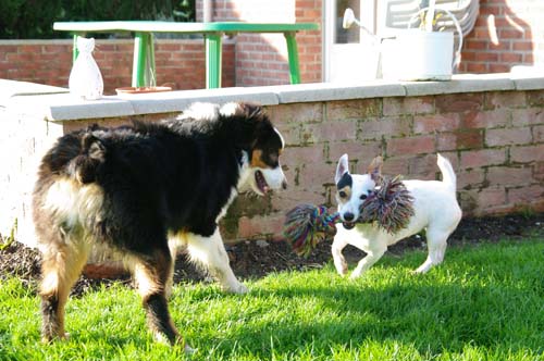 | Bonjour, merci pour tous vos mails de bien venu ! Pour répondre à toutes vos questions, je vie à Zoteux, un petit village dans le Pas de Calais. Oui Little est bien née le 21 Juin 2009 ! Elle vient d'un élevage de Normandie. Voici une photo d'elle, avec Curly ma petite Jack !