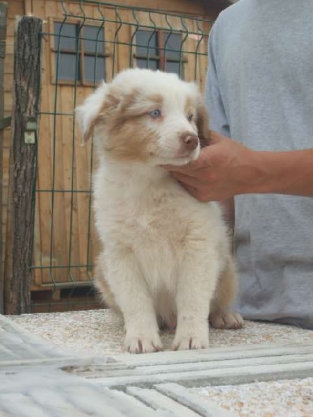 | bonsoir, je m appelle Elodie j ai 23 ans un enfant de 2ans et demi et un jeune berger australien Grimjo (ISIWUN Génius White sur les papier) qui est né le 17 avril 2011. il provient de l élevage Isiwun il est inscrit au LOF mais nous le ferons pas confirmé ni reproduire conformément au souhait de l éleveur car il présente un défaut au niveau de sa robe (trop de blanc) rouge merle.