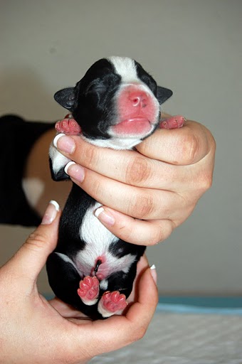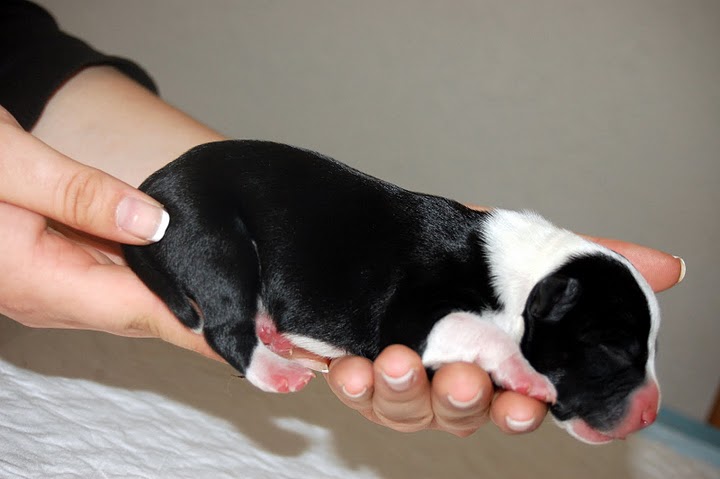 | Un staffie! Tiens, j'en ai croisé un y'a pas longtemps, en plus il a levé la patte sur ma chienne le gentleman je vous dis pas ma tronche! J'avais aussi compris que tu le prenais, en fait tu lui as juste donné son petit nom après avoir assisté à la naissance c'est ça?