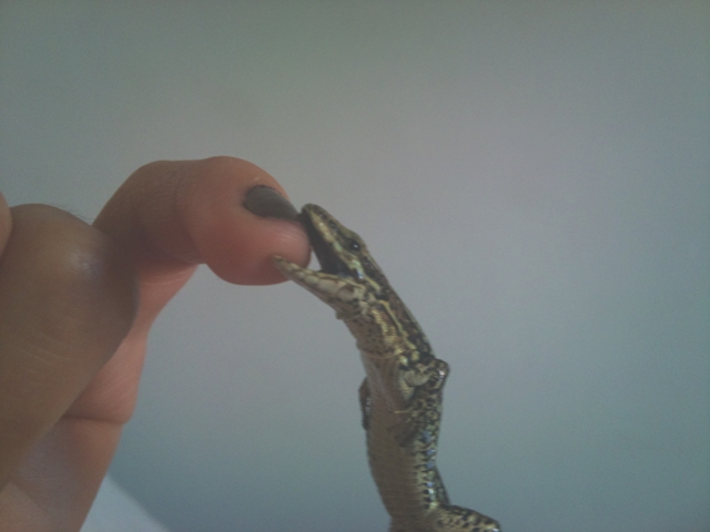 | nous avons une vraie chasseresse à la maison ! J'ai qque photos de ses rescapés qui n'ont pas succombés à ses petits crocs... Dc Voici qquns de ses fameux "cadeaux": le plus souvent ce sont des lezards et geckos ( qui ne s'en sortent pas souvent) ensuite les oisillons; même chose: rares sont ceux qui survivent: Petit( mais courageux) lezard qui ne se laisse pas faire: