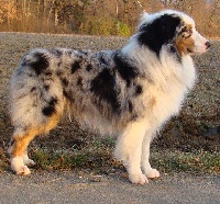 | Bonjour, je m'appelle Céline Boucher je vis dans l'Ain, près de Bourg en Bresse et je débute en élevage sous l'affixe "des tribus de mataoka". Je possède deux bergers australiens. Isiwun'Dakota red femelle rouge tricolore Père: Isiwun'Apocalypse Now Shallow Rivers dit Marlon Mère: Isiwun'U.S Red Nex dite Dodge Black Canyon Red Grousse de Solemel dit Bounty mâle bleu merle Père: Scaramouche de Solemel Mère: US Renegade Girl de Solemel Et je viens d'avoir ma première portée d'australien ce vendredi. Il m'arrive aussi de faire de temps en temps des stages troupeau chez Phillipe Heintz