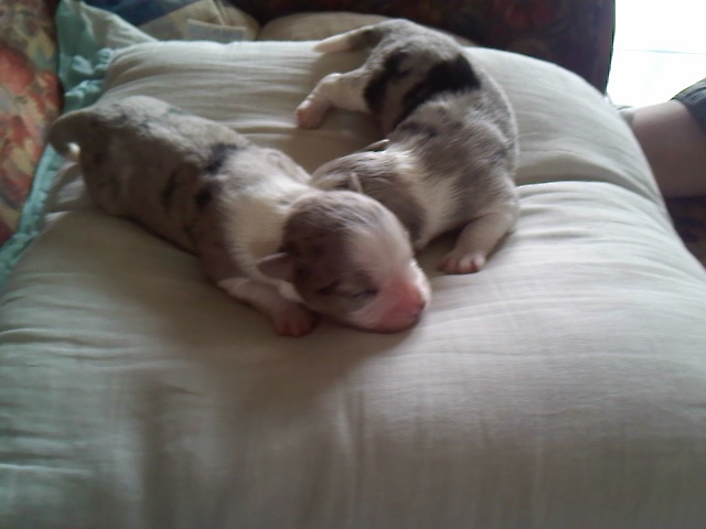 | salut desole beaucoup pris et probleme d internet alors voila on va choisir notre louloute le 12 juin c est plus rapide que l on pensée elle est née le 19 mai et elle est bleu merle ( il y en a 2 ) donc quand j en serai plus je vous le dirai je suis trop contente , j ai trop hate de la rencontrée |