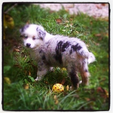 | Alors, alors.... Mon doudou a moi s'appel Hypso, de son vrai nom Here's Tea Tree Gulli du Pays de longs Hiver. Il aura 3 mois le 3 décembre et c'est une vrai peluche. Il est de couleur bleu merle et a un il bleu et un il marron/vert... Malheureusement mon doudou ne sera pas confirmable au LOF ( mais il est quand même inscrit) car il a un il qui va dans le blanc. Mais je vous avoue que confirmable au nom ça ne nous empêche pas de l'aimer le plus fort de monde !!! Son père se prénom Ch SR V' Billy & Tuck (Billy) un magnifique bleu merle de caractère très calme et dominant. Il est né le 11/09/2004. Sa mère c'est Diam's Black Lagoon, un aussie noir tricolore de caractère câline et plein d'énergie. Elle est née le 02/02/2008. Ma passion des berger australien est arrivée par hasard ce qui était sûre c'était que je voulais un doudou et un gros ^^! Un jour a une exposition canine je suis restée (sans vous mentir) 45 min devant les berger australien et j'ai su que c'était LE chien que je voulais !!! Voili voilou j'espère avoir était la plus complète possible dans ma description ^^ et j'espère partager de nombreuses choses avec vous tous!